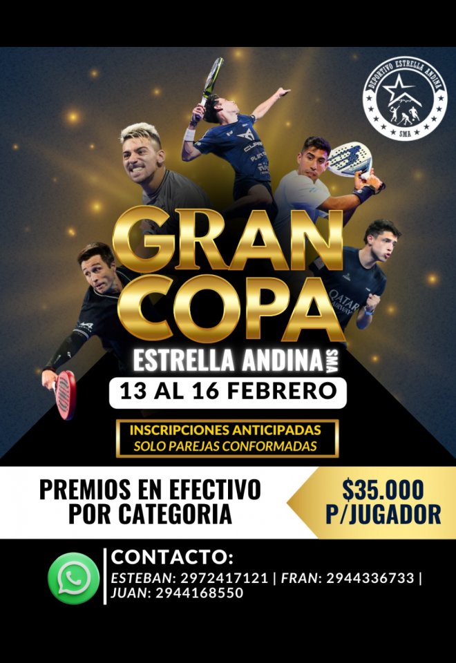 »» Evento: COPA ESTRELLA ANDINA FEBRERO »» Localidad: San Martín de los Andes »» Fechas: 13/02/2025 al 16/02/2025